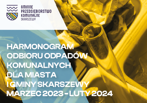 Prosimy o zapoznanie się z nowym harmonogramem odbioru odpadów komunalnych w Gminie Skarszewy na okres marzec 2023 - luty 2024, w formie ulotki. POBIERZ TUTAJ